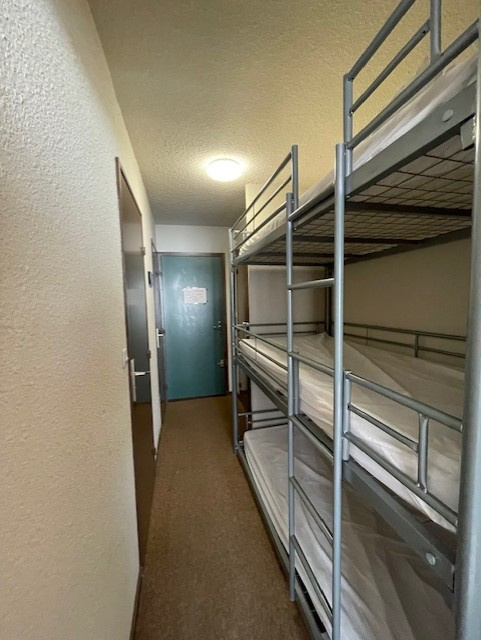 Il se compose d’une entrée avec placard, d’un coin cabine équipé de lits superposés offrant 3 couchages, d’une salle de bain avec WC séparés, ainsi que d’une kitchenette ouverte sur un séjour / salle à manger convivial.