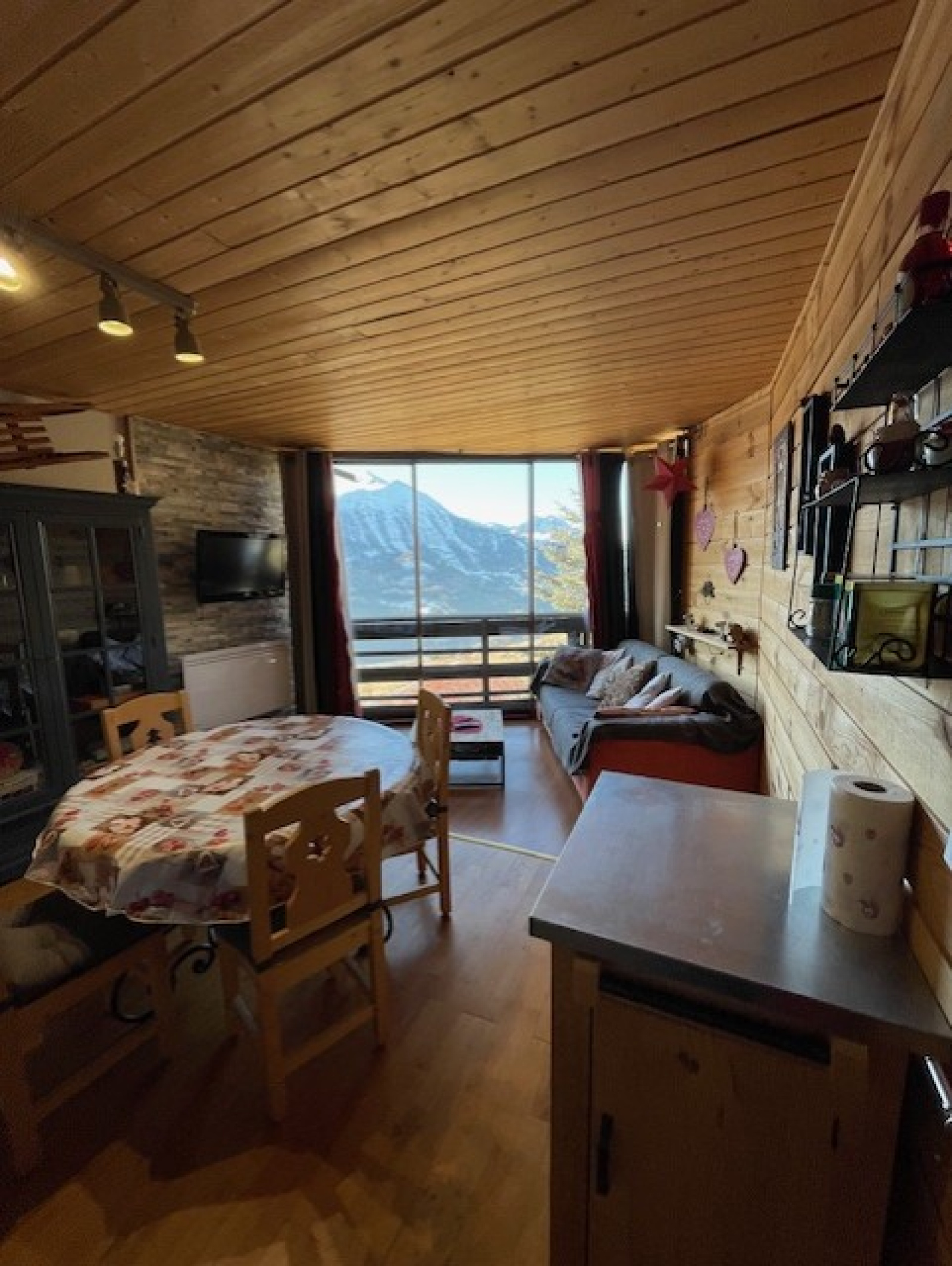 Studio situé à 5 minutes à pieds du centre de la station et des commodités, il se compose d'une kitchenette ouverte sur un séjour / salle à manger, salon donnant une vue agréable sur la vallée , d'un coin montagne fermé,d' une salle d'eau avec wc