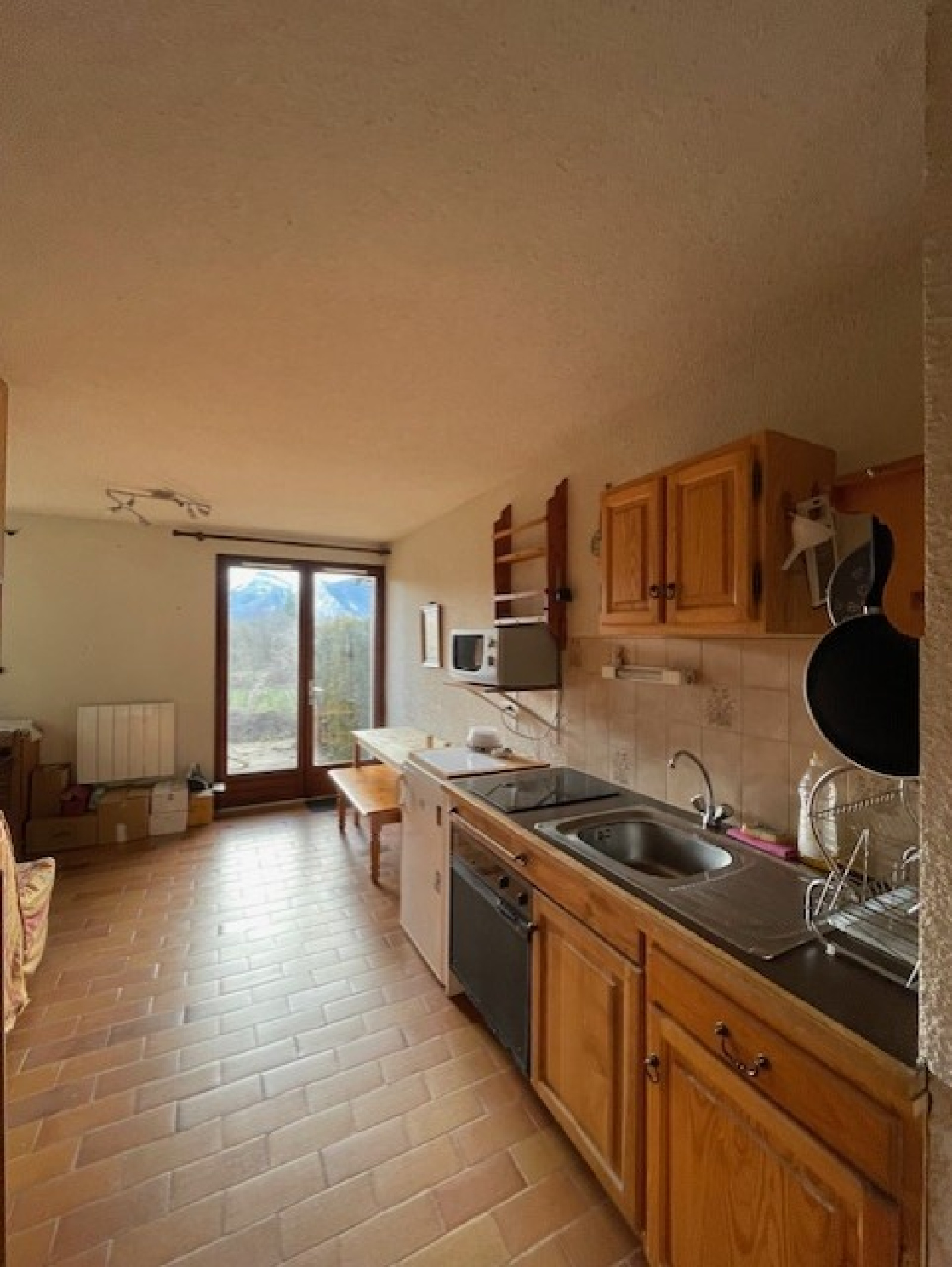 Il se compose d’une entrée avec placard, d’une kitchenette ouverte sur un salon / salle à manger, d’une salle de bain ainsi que d’un WC séparé.